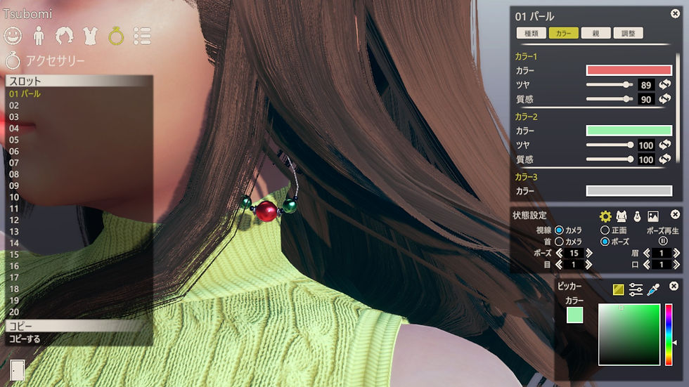 小物は種類が豊富で、位置や大きさを調整できる為、アイデア次第でかなり面白いコスチュームが作成可能だ。