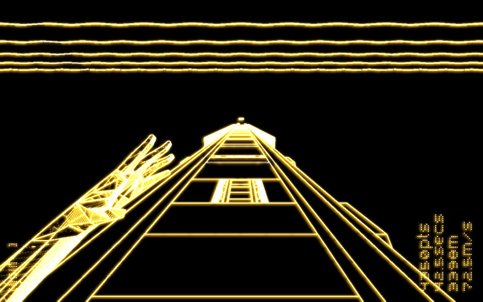 画面を見てみると、ワイヤーフレーム(調)で描かれたグラフィックが目を惹く。ゲームはそんな世界をただ走るだけの内容。