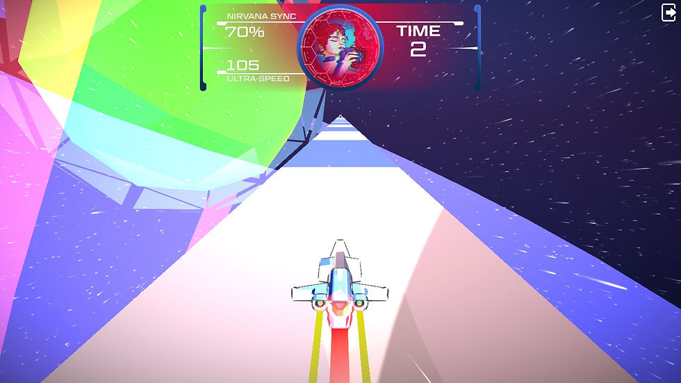 レースは、左右移動+ジャンプで障害物を避けてゴールを目指すシステム。画面中央上部にステータスが表示されており、ステータス左上のNIRVANA SYNK(シンクロ率)が自機の残数となる。(この値はストーリーモードの選択肢で増加させる事が可能)