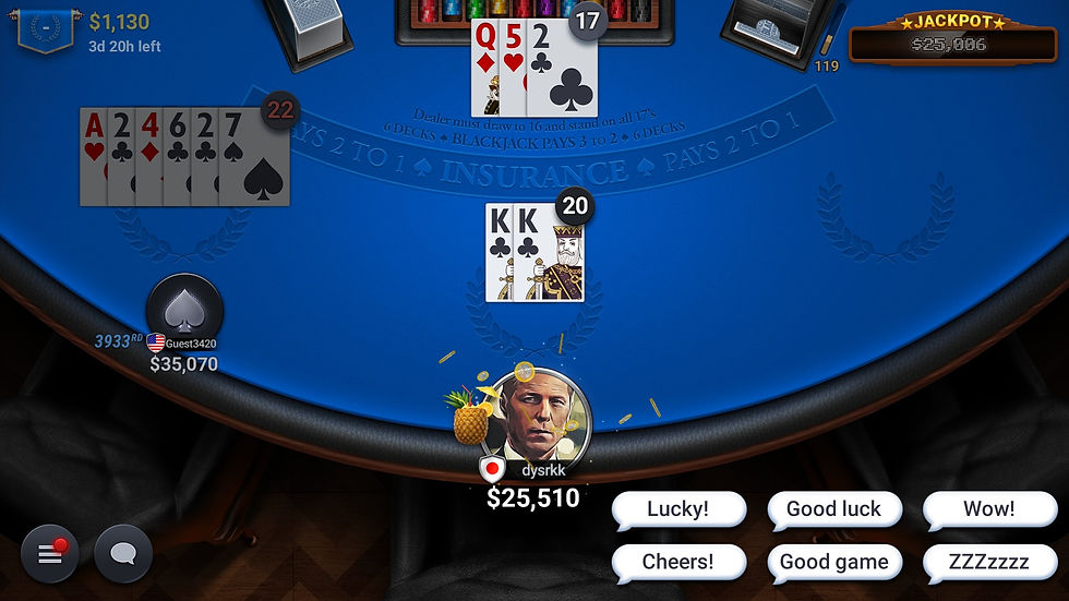「Poker Championship」の姉妹ゲームで、両ゲームをインストールしておく事でメニュー画面上部のメニューで切り替えながら遊ぶ事が可能。このゲームもポーカー同様落ち着いた雰囲気でプレイする事が出来る。基本無料なので軽く運試しをするには良いゲームだ。