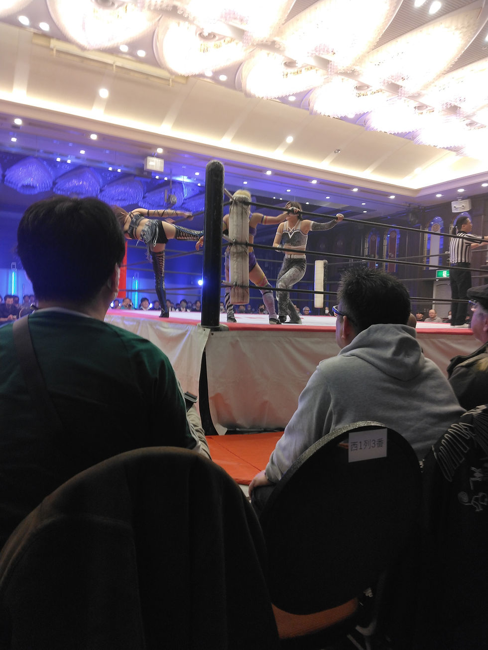 昨年スターダムの興行が行われた会場。普段は結婚式場だが、地元の女子プロレス実行委員会の手でプロレス会場として使用されるようになってきた様だ。内装がゴージャスで天井はシャンデリア調の照明。実に女子プロレスらしい会場と言える。