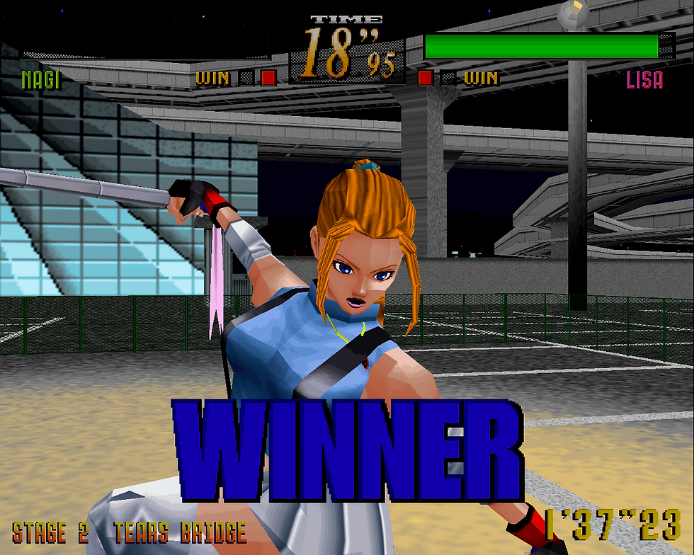バーチャファイター2で3D対戦格闘ゲームの雄に躍り出たセガが「ファイティングバイパーズ」に続いて世に送り出した武器対戦格闘ゲーム。同時期にナムコの武器対戦格闘ゲーム「ソウルエッジ」も発売されていて、なんとなく似たゲームが続くなぁ、と思っていた記憶がある。