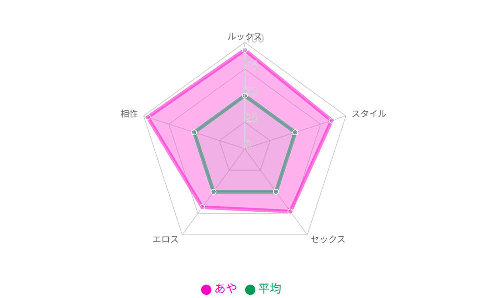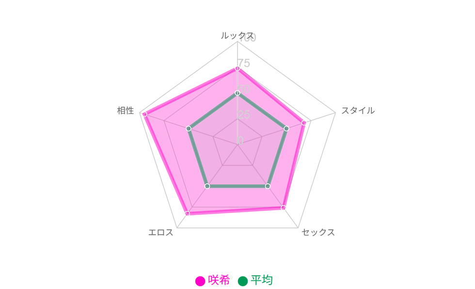 最初のプレイ中にオナニー後、潮ならぬおしっこ大放出をしてくれてアブノーマルプレイの片鱗を見る事が出来た。また、その時のプレイでは最後「顔射」をさせてくれた。これは、個人的にかなり嬉しい出来事で、これだけでリピート確実と宣言出来る女性だ。